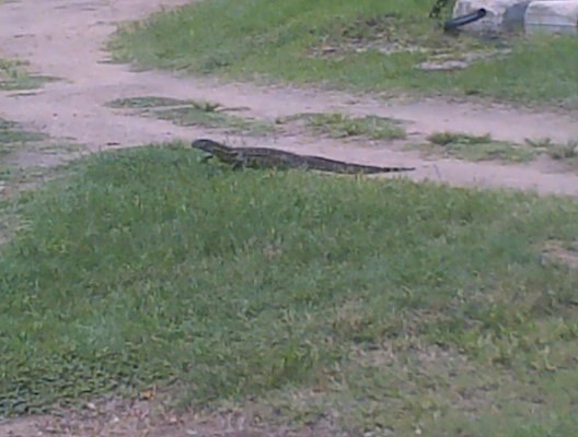 Then someone very unusaul made a gratious entry at the top of our Farm near the dam....a Leguaan (Likkewaan / Lizzard) (photo attached) that was more than a meter long, and was slowly making his way around the house, lingering for quite some time – long enough to allow one of our staff to take a picture, before disappearing in the “wild” again. I had to read up about him and share, since I found it very fascinating. It is said that they average at about one and a half metres but can grow to be longer. Their tails tend to be just a little bit longer than their bodies and they are the second longest lizard species in Southern Africa. They feed on small insects, animals and eggs. For their lairs they will make use of abandoned burrows, holes in large trees or large cracks in rock formations. In these they will hibernate through the winter.